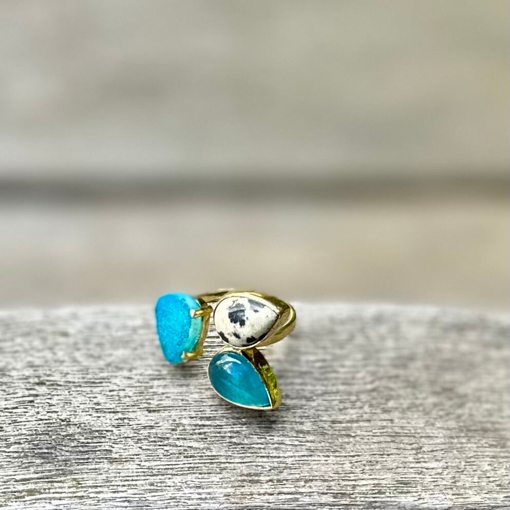 三つのストーンリング ブルーカルセドニー、ドゥルージー、ダルメシアンジャスパー