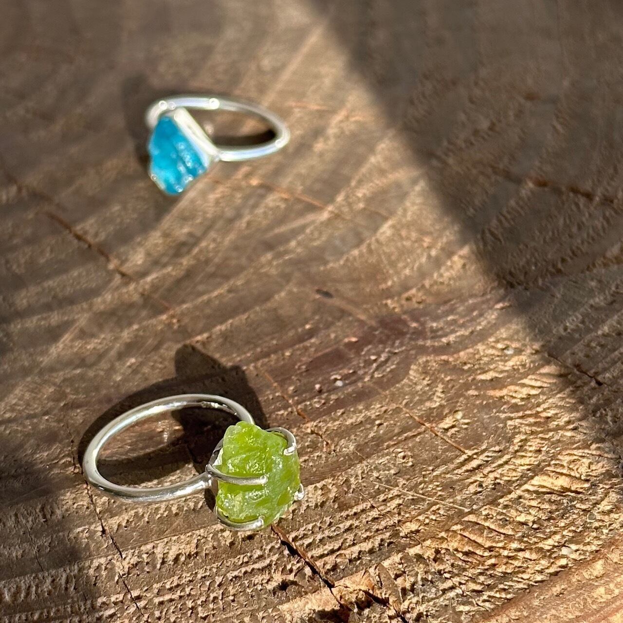 ペリドットラフカットシルバーリング 原石 11号 8月誕生石